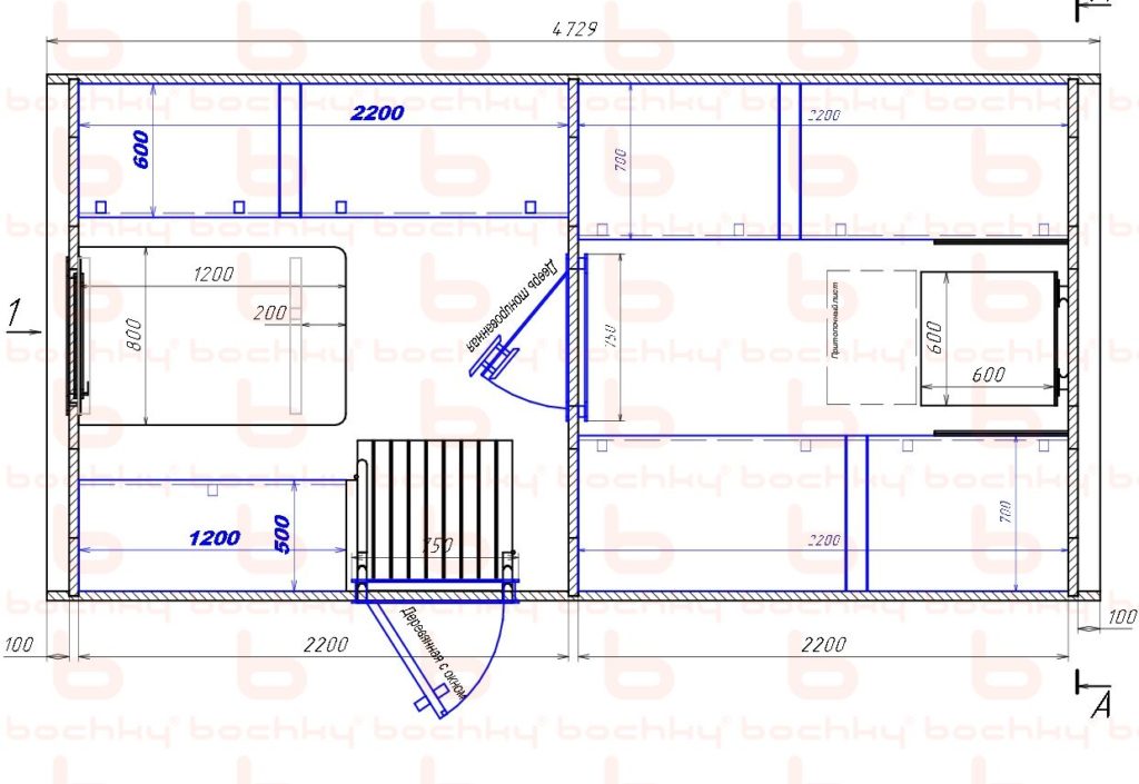 • Деревянная дверь в парилку