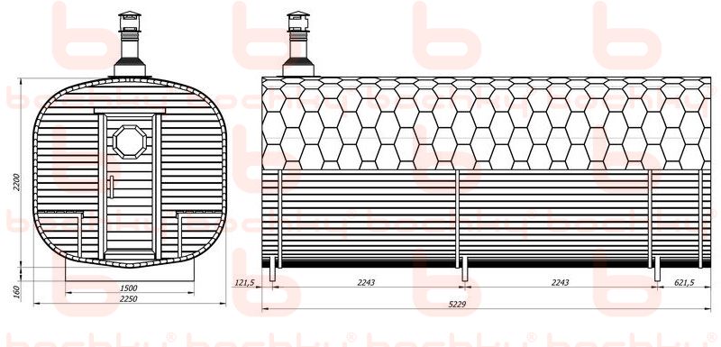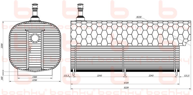 В базовой комплектации. Grill’D Bochky Short с внутренней топкой. Загрузка - 40 кг камней. Сталь повышенной прочности