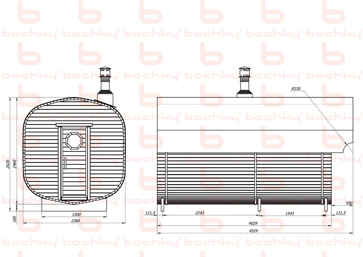 В базовой комплектации. Grill’D Bochky Short с внутренней топкой. Загрузка - 40 кг камней. Сталь повышенной прочности
